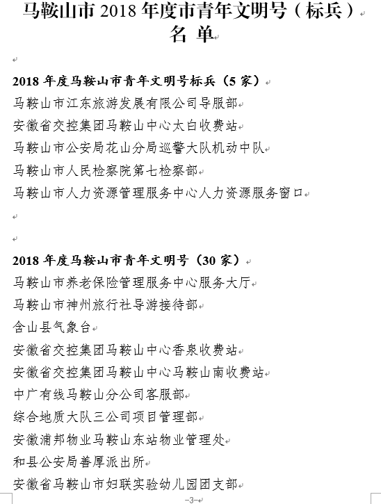 日前,根據(jù)《關(guān)于命名2018年度馬鞍山市青年文明號、青年文明號標兵的決定》馬青創(chuàng)建文明號〔2019〕4號文件精神,集團下屬安徽浦邦物業(yè)馬鞍山東站物業(yè)管理處集體榮獲馬鞍山市“青年文明號集體”命名。