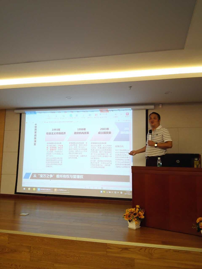 芮經(jīng)理將培訓(xùn)內(nèi)容分為兩個(gè)部分,第一部分從國(guó)企改革的總體情況、國(guó)企改革的重要內(nèi)容、國(guó)有產(chǎn)權(quán)與法人治理體系、完善國(guó)有資產(chǎn)監(jiān)管體制和發(fā)展混合所有制經(jīng)濟(jì)五個(gè)方面詳細(xì)闡述了企業(yè)改革的重要性。第二部分講解了國(guó)有企業(yè)如何將職業(yè)經(jīng)理人制度落地。芮經(jīng)理強(qiáng)調(diào)職業(yè)經(jīng)理人在道德和專業(yè)兩方面都要有較高水準(zhǔn),職業(yè)經(jīng)理人不僅個(gè)人要學(xué)習(xí),更重要的是應(yīng)積極設(shè)法將企業(yè)及企業(yè)中的員工培養(yǎng)塑造為學(xué)習(xí)的“機(jī)器”。