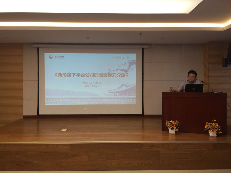 8月2日下午,“江東講堂”第二講《新形勢下平臺公司的融資模式介紹》開講,授課人為集團副總經理任俊元,本次講堂圍繞融資平臺概況、融資平臺發(fā)展歷程、融資模式介紹與未來融資產品嘗試四個方面講授。
